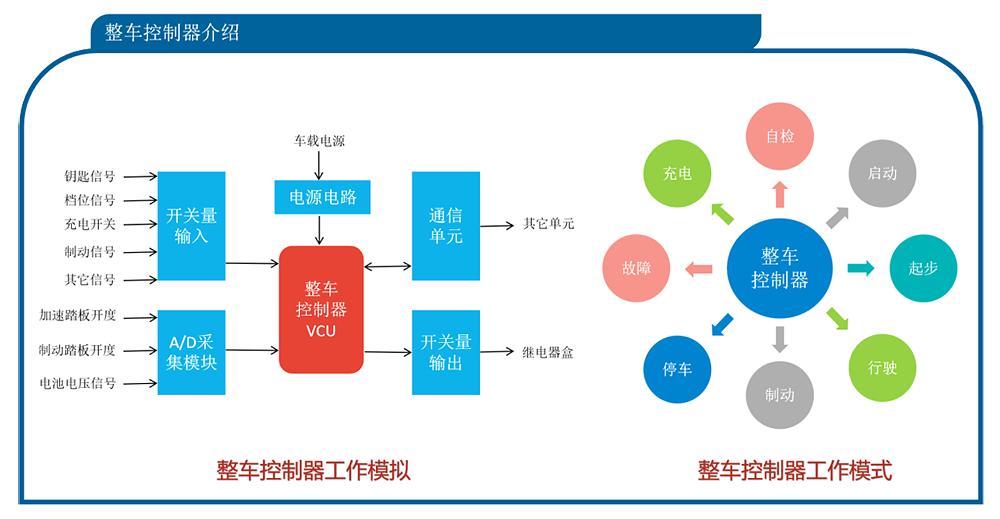 用于整車控制器測(cè)試:電壓適應(yīng)性測(cè)試、硬件測(cè)試、總線通信測(cè)試、正常工作狀態(tài)測(cè)試、信號(hào)輸入/輸出模擬測(cè)試、故障診斷測(cè)試、版本號(hào)讀取與對(duì)比、程序刷寫等。